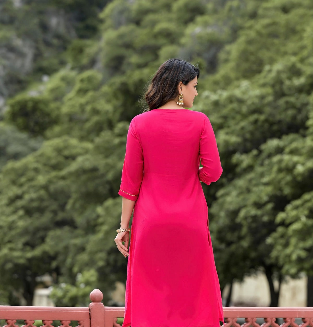 New Treaditional Roman Silk Fabric 3D Digital Duptta Embroidery Kurta Set Name: New Treaditional Roman Silk Fabric 3D Digital Duptta Embroidery Kurta Set Kurta Fabric: Chanderi Silk Bottomwear Fabric: Chanderi Silk Dupatta Fabric: Cotton Kurta Color: Pink Dupatta Color: Pink Sleeve Length: Three-Quarter Sleeves Sleeve Styling: Regular Neck: Round Pattern: Embroidered Print or Pattern Type: Floral Ornamentation: Embroidered Fit/ Shape: A-line Occasion: Party Net Quantity (N): Single New Treaditional Roman Silk Fabric 3D Digital Duptta Embroidery Kurta Set Sizes: S (Bust Size: 36 in, Shoulder Size: 13 in, Kurta Waist Size: 38 in, Top Length Size: 46 in, Bottom Waist Size: 30 in, Bottom Length Size: 40 in, Dupatta Length Size: 2 in) M (Bust Size: 38 in, Shoulder Size: 14 in, Kurta Waist Size: 40 in, Top Length Size: 46 in, Bottom Waist Size: 32 in, Bottom Length Size: 40 in, Dupatta Length Size: 2 in) L (Bust Size: 40 in, Shoulder Size: 14 in, Kurta Waist Size: 42 in, Top Length Size: 46 in, Bottom Waist Size: 34 in, Bottom Length Size: 40 in, Dupatta Length Size: 2 in) XL (Bust Size: 42 in, Shoulder Size: 15 in, Kurta Waist Size: 44 in, Top Length Size: 46 in,